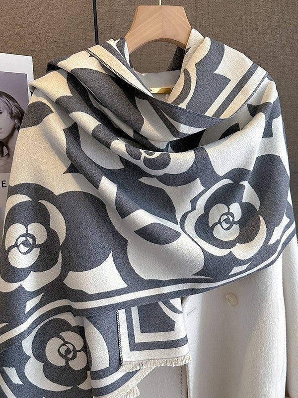 Fringed Keep Warm Knitted Flower Shawl&Scarf