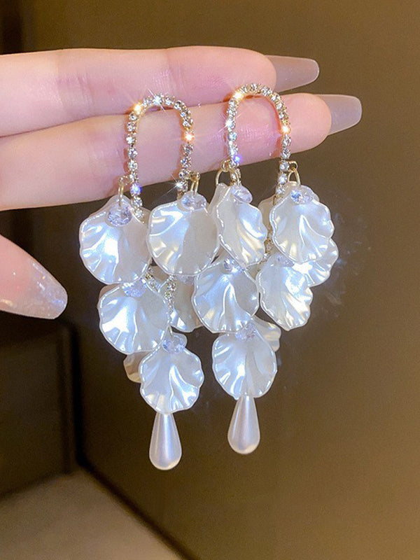 Material:Imitation Pearls,ClothFeature:Flower Shape,Tasseled,GeometricOccasion:Statement,Leisure FashionSeasons:Spring,Summer,Autumn,WinterType:Drop EarringsSize One_size (inch) : Length= 4.68 ; Width= 2.34 ;