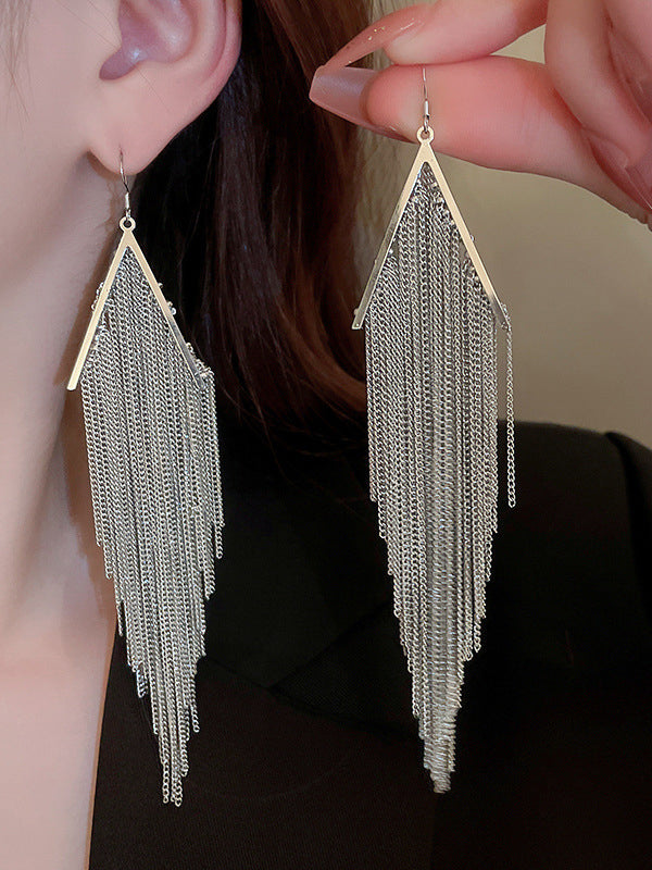 Material:AlloyFeature:Tasseled,Solid Color,GeometricOccasion:Statement,Leisure FashionSeasons:Spring,Summer,Autumn,WinterType:Drop EarringsSize One_size (inch) : Length= 5.85 ; Width= 1.29 ;