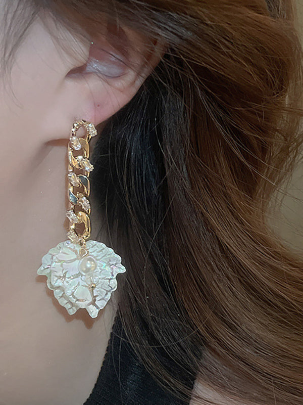 Material:Imitation Pearls,AlloyFeature:Leaves Shape,Rhine Stones,ChainsOccasion:Statement,Leisure FashionSeasons:Spring,Summer,Autumn,WinterType:Drop EarringsSize One_size (inch) : Length= 2.57 ; Width= 0.98 ;...