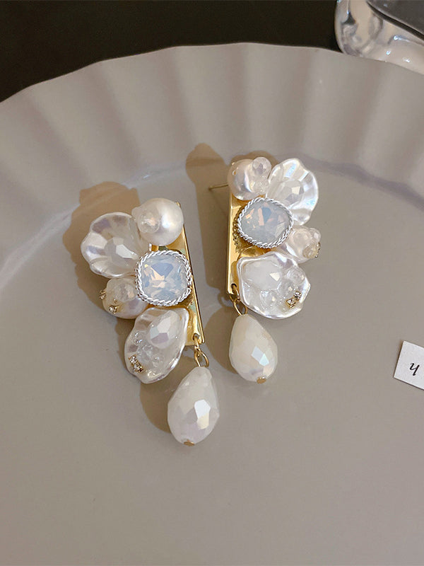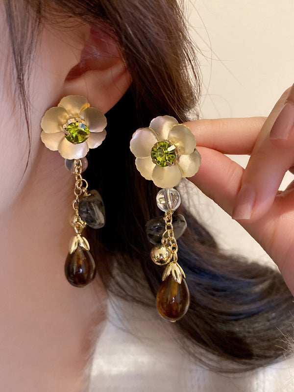Flower Shape Geometric Rhine Stones Solid Color Split-Joint Drop Earrings