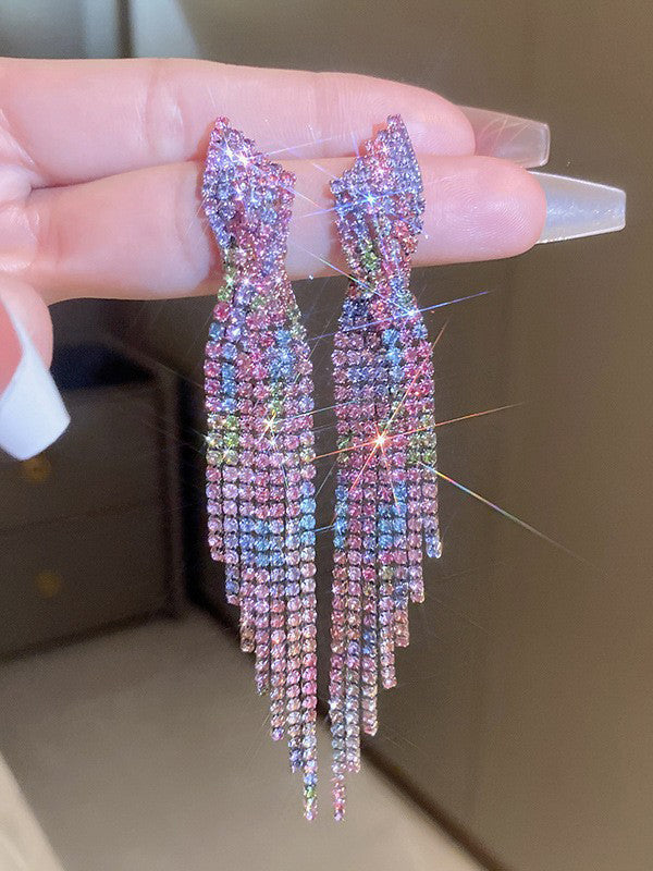 Geometric Gradient Rhine Stones Tasseled Drop Earrings