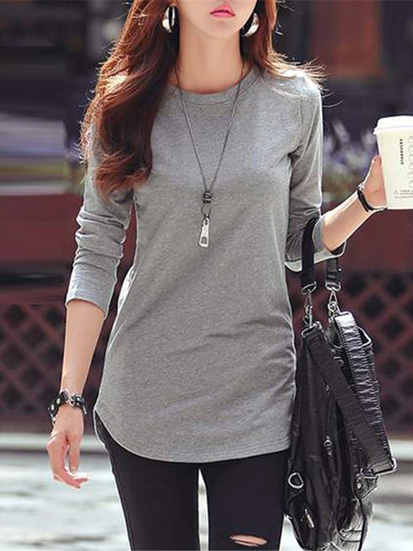 4 Colors Simple Round-Neck Long Sleeves T-Shirt Top