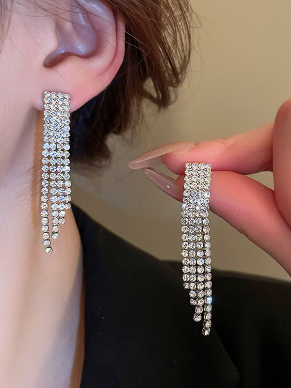 2 Pieces Rhine Stones Tasseled Earrings Accessories Necklaces Accessories
