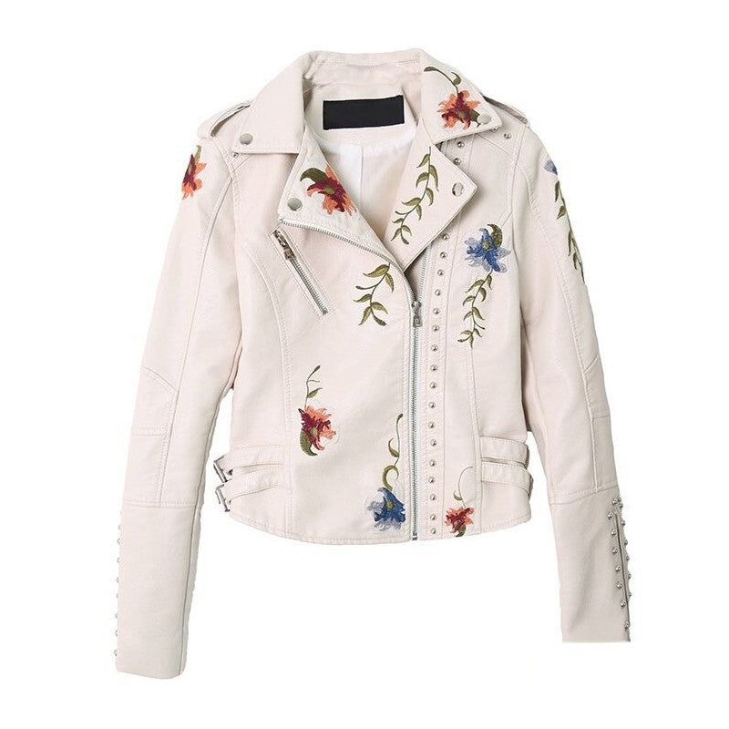 Rivet Embroidery PU Leather Short Jacket