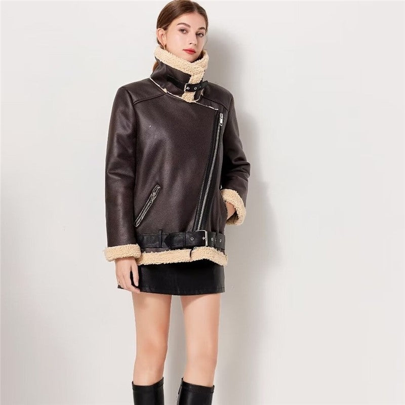 Faux Fur Leather Biker Jacket
