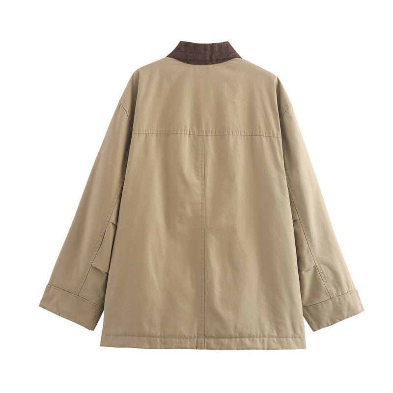 Khaki Loose Lapel Cargo Jacket