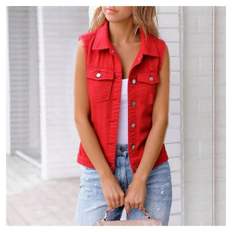 Solid Color Loose Collar Denim Vest Jacket