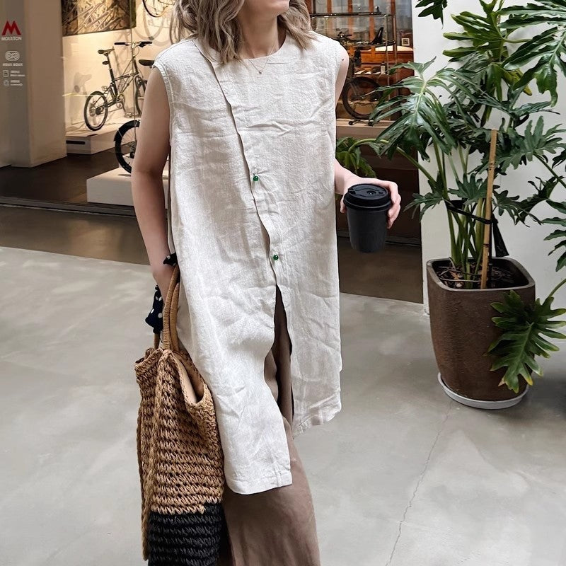 Material:HempStyle:Loose,Intellectual,All-match,Look-youngerNeckline:Round-neckOccasion:Going out,Casual,Artistic Retro,Girlish Sweetness,Light Maturity,Leisure FashionSeasons:SummerSleeve Length:SleevelessSize M (inch) : Bust= 40.95 ; Shoulder= 15.60...