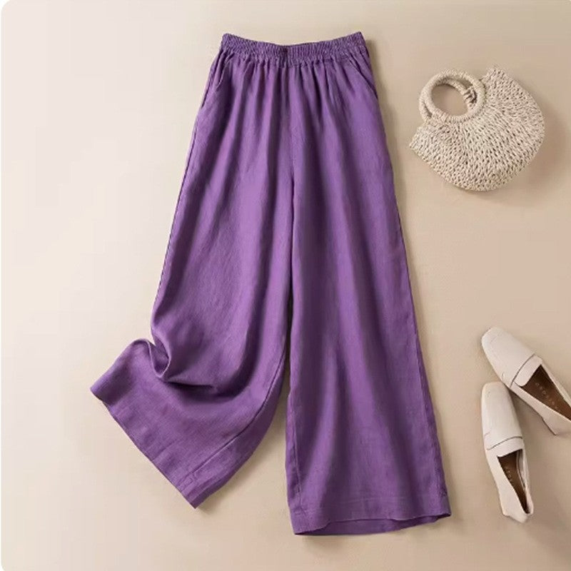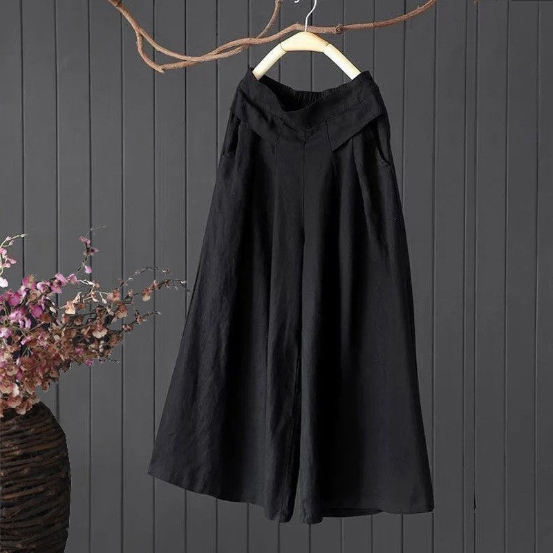 Material:Cotton,HempStyle:Loose,Intellectual,All-match,Look-younger,Ninth PantsFeature:ElasticityOccasion:Going out,Casual,Artistic Retro,Girlish Sweetness,Light Maturity,Leisure FashionSeasons:SummerType:CulotteSize M (inch) : Waist = 25.74-31.98 ; Hips=...