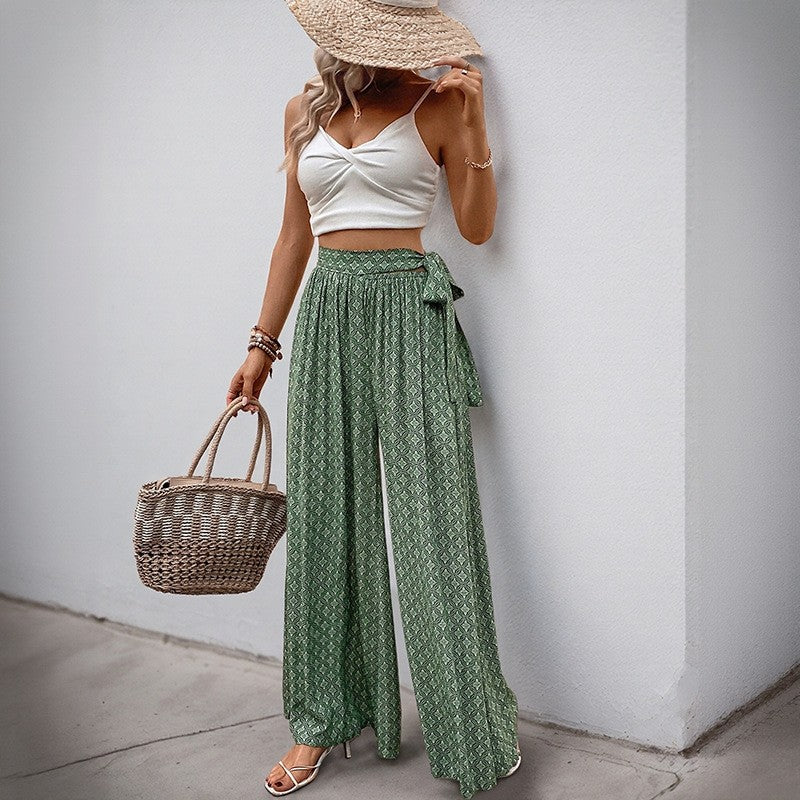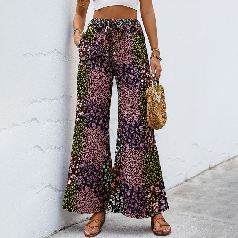 Fashionable And Versatile Printed Flared Wide-Leg Pants