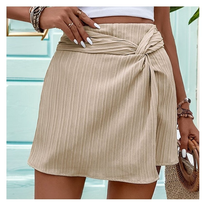 High-Waisted Solid Color Textured Knot Skirt Pants
