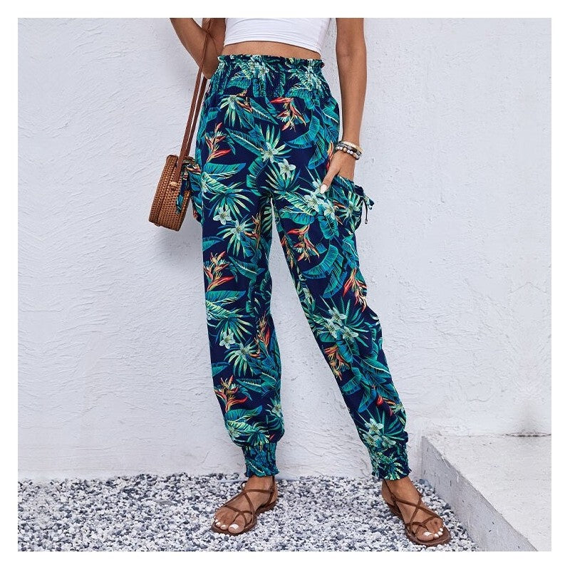 Elastic Waist Floral Print Casual Pants - Versatile And Stylish