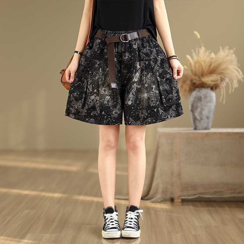 Feature:Elasticity,TiedOccasion:Going out,Casual,Artistic Retro,Girlish Sweetness,Light Maturity,Leisure FashionSeasons:SummerMaterial:Artificial CottonType:ShortsStyle:Cute,Intellectual,All-match,Look-youngerSize S (inch) : Waist = 23.40-28.08 ; Hips=...