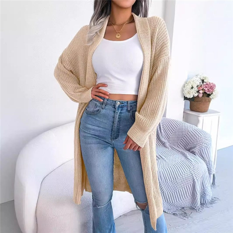 Material:PolyesterStyle:LooseFeature:Weave,Contrast ColorNeckline:CollarlessOccasion:Casual,Vacation,Simple,Home WearSeasons:AutumnType:Knitwear,Cardigan Tops,Cardigan CoatsSleeve Length:Long SleeveSize S (inch) : Bust= 41.34 ; Sleeve= 19.50...