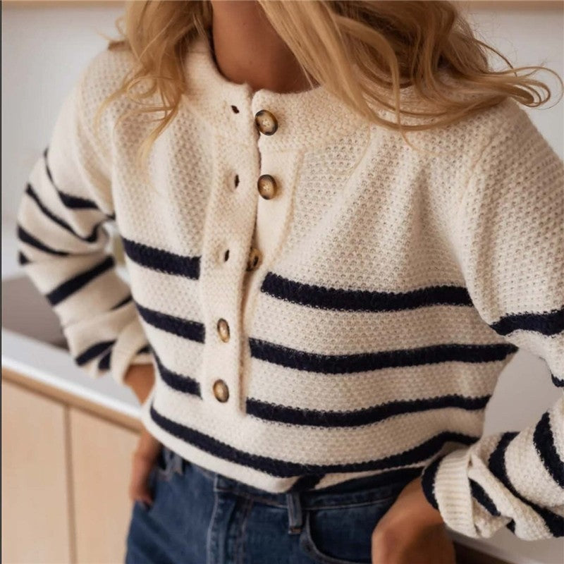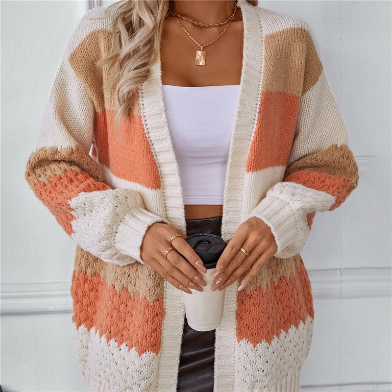 Color Block Striped Sweater Cardigan Loose Lantern Sleeves