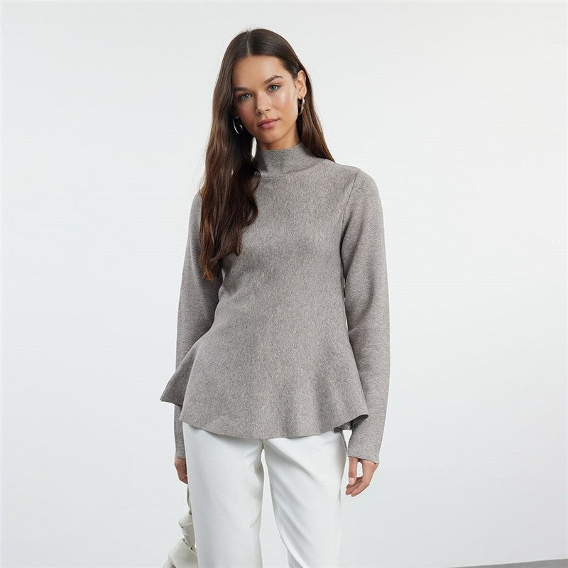 Solid Color Stacked Neck Loose Long Sleeve Sweater