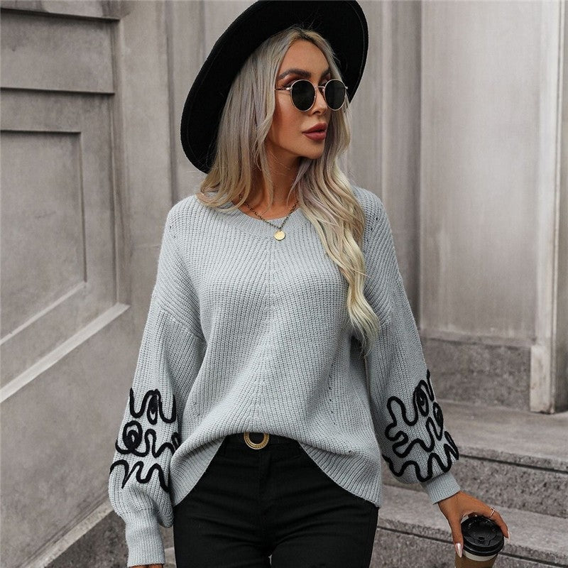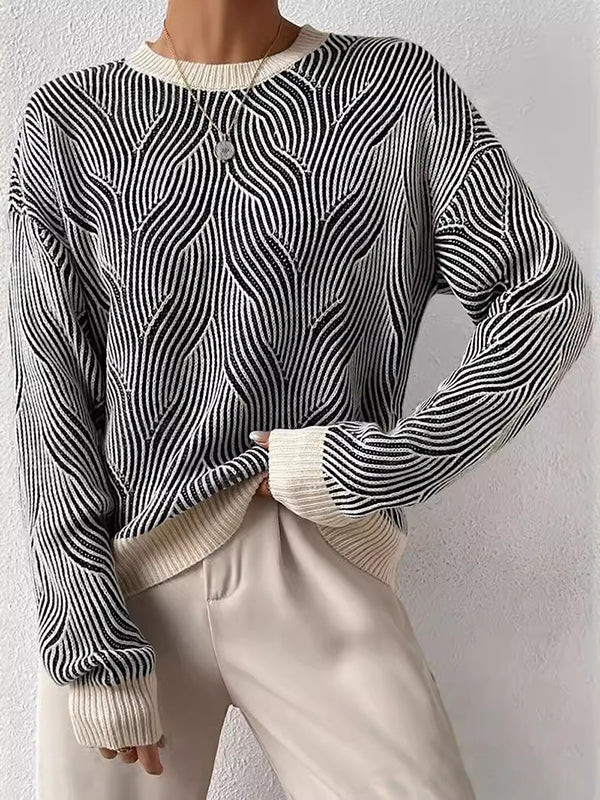 Long Sleeves Loose Printed Round-Neck Knitwear Pullovers Sweater Tops