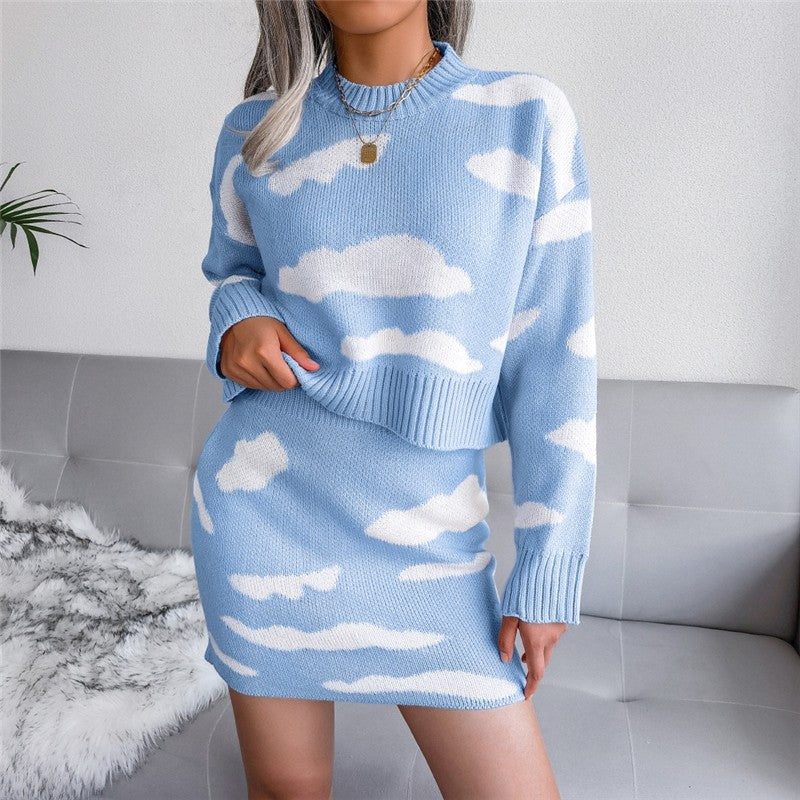 Long Sleeve Round Neck Cloud Bodycon Dress 2-Piece Set
