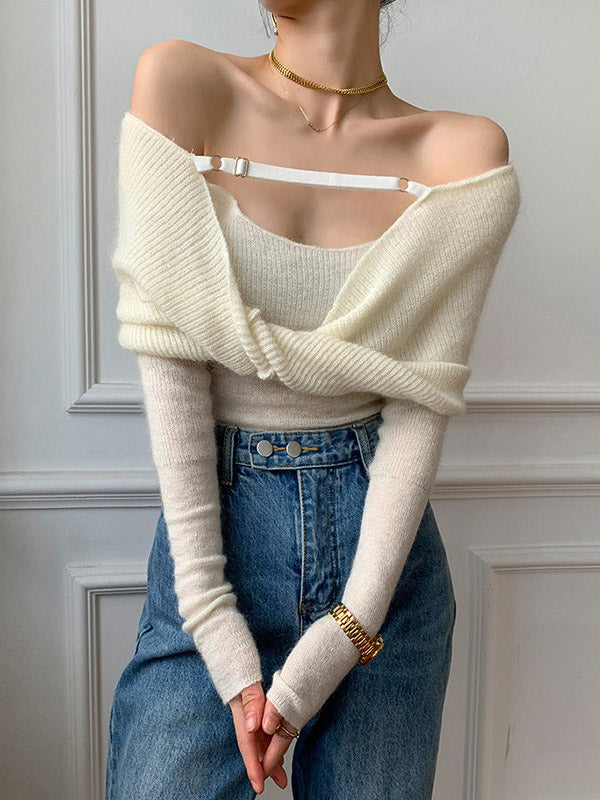 Original Stylish Off-The-Shoulder Long Sleeves Sweater Top