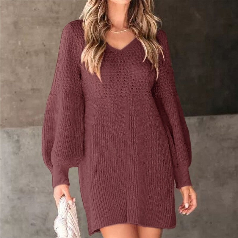 Material:AcrylicStyle:Loose,Cute,Intellectual,All-match,Look-youngerFeature:JacquardNeckline:V-neckOccasion:Going out,Casual,Artistic Retro,Girlish Sweetness,Light Maturity,Leisure FashionSeasons:Spring,Autumn,WinterType:Knit DressesSleeve Length:Long SleeveSleeve Style:Balloon SleevesSize S (inch) : Bust=...