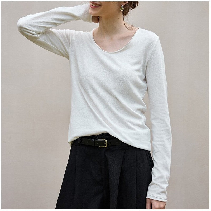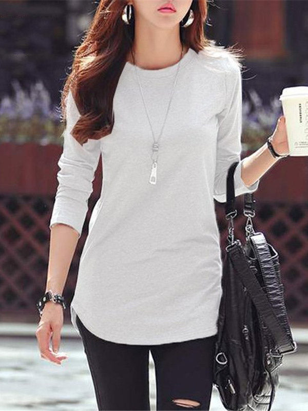 Long Sleeves Solid Color Round-Neck T-Shirts Tops
