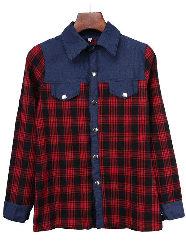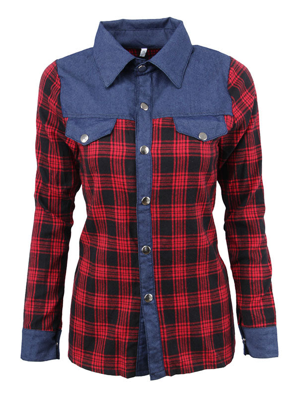 Material:CottonFeature:Split-Joint,CheckeredNeckline:LapelOccasion:Going out,Casual,VacationSeasons:Spring,Autumn,WinterType:T-Shirts TopsSize S (inch) : Bust= 31.20 ; Shoulder= 12.09 ; Sleeve= 21.45 ;...