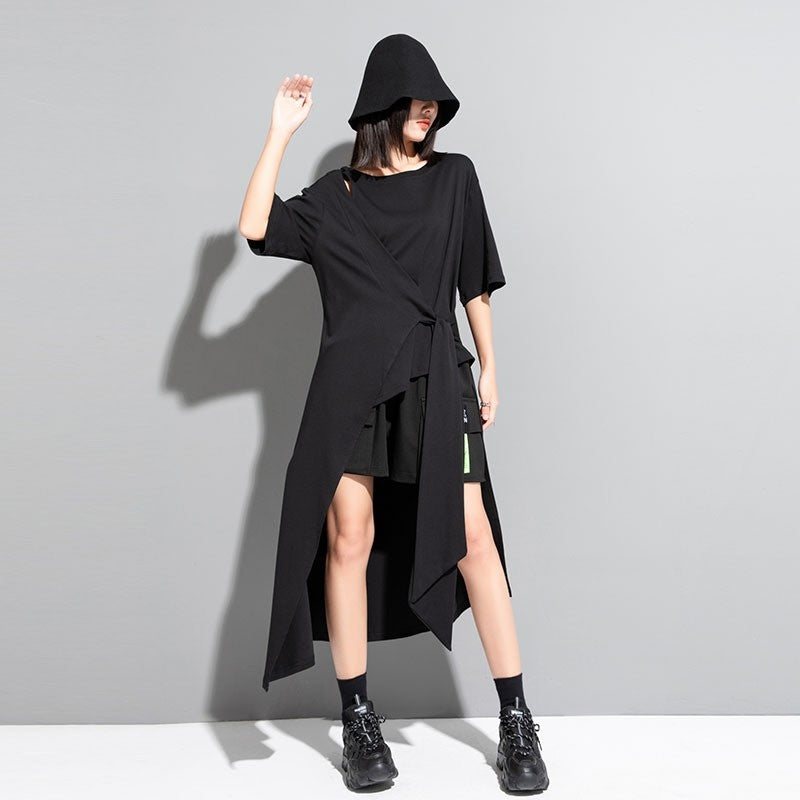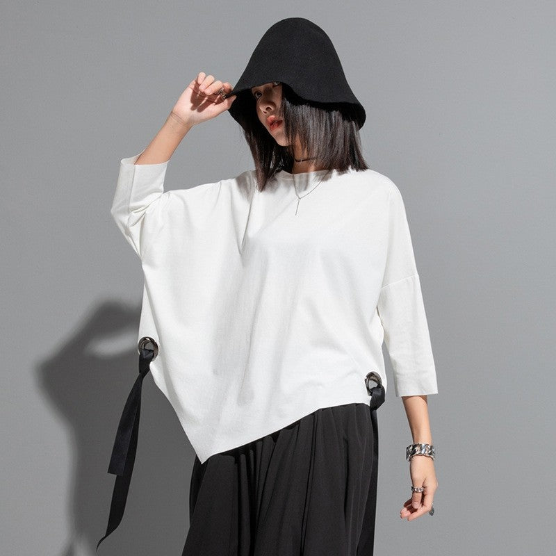 Half Sleeves Loose Hollow Split-Joint Tied Round-Neck T-Shirts Tops