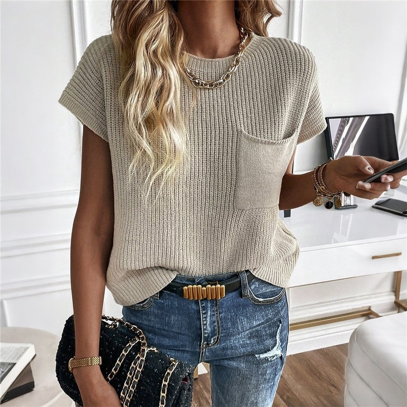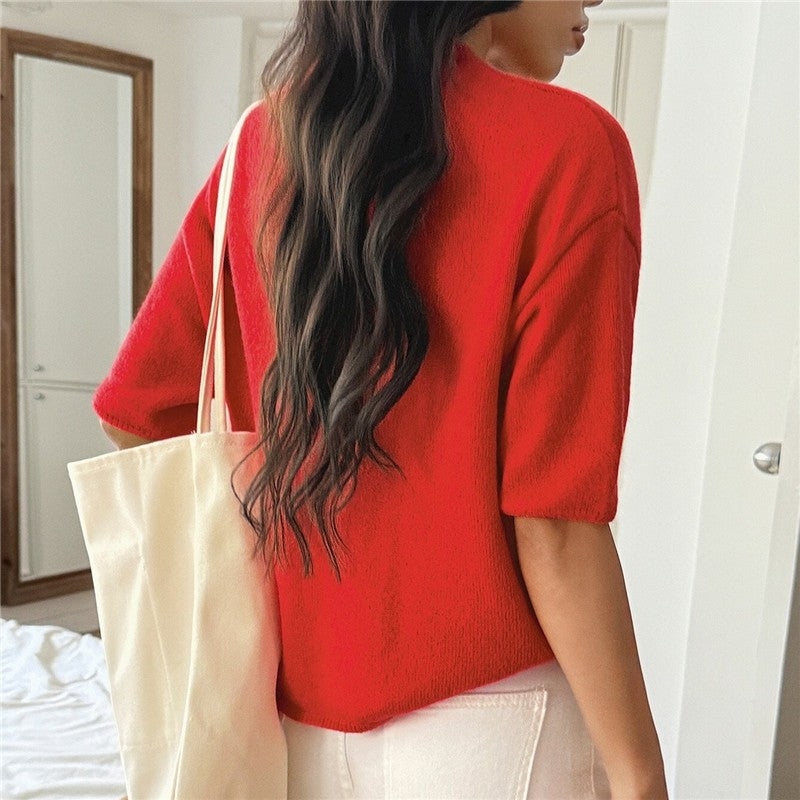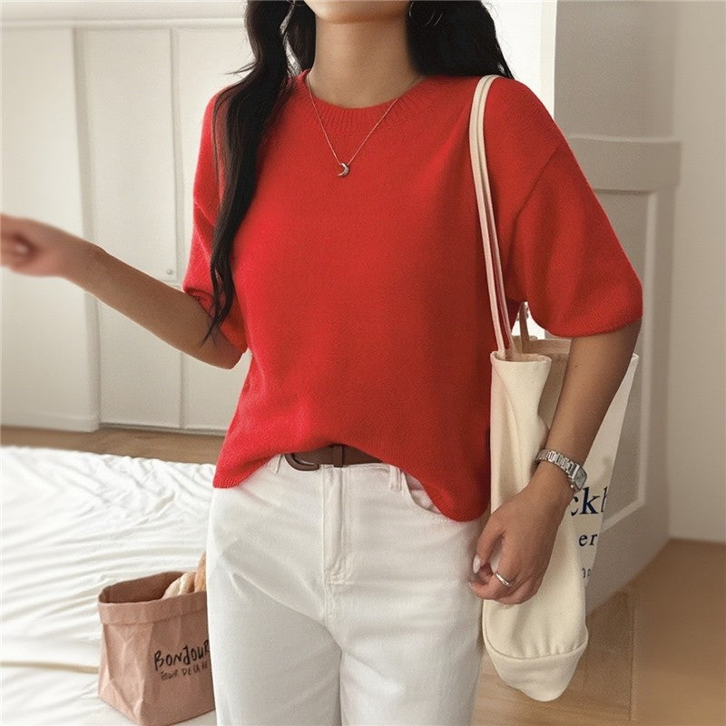 Solid Color Casual Knit Short Sleeve T-Shirt