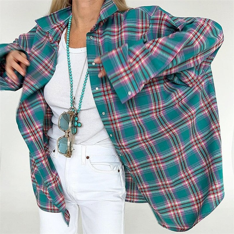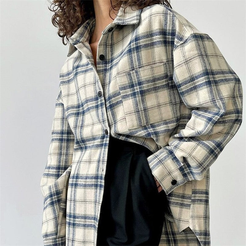Material:Cotton-blendStyle:Intellectual,All-match,Look-youngerFeature:PlaidNeckline:LapelOccasion:Going out,Casual,Artistic Retro,Girlish Sweetness,Light Maturity,Leisure FashionSeasons:Spring,AutumnType:BlousesSleeve Length:Long SleeveSleeve Style:Raglan SleeveSize S (inch) : Bust= 42.12...