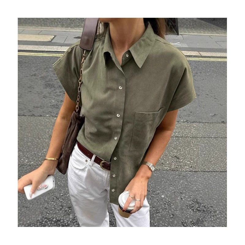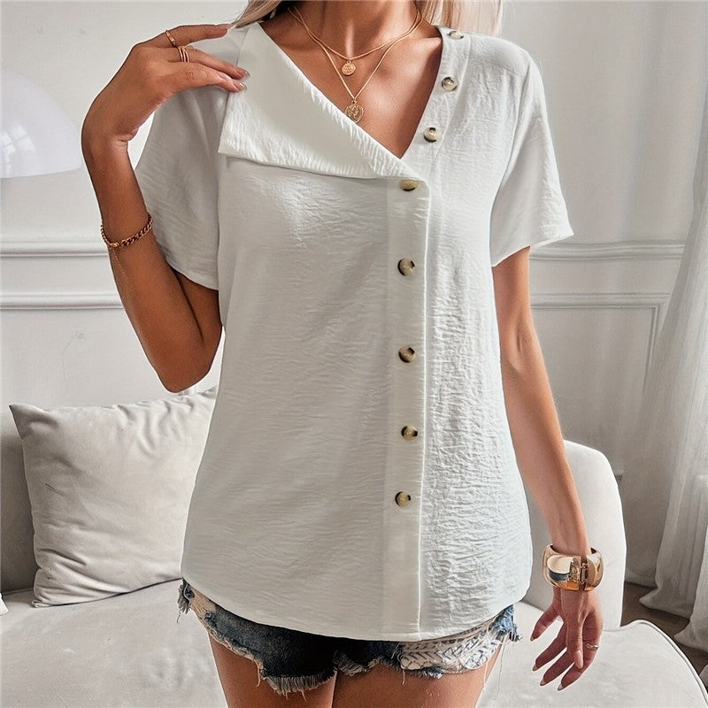 Material:Cotton-blendStyle:Intellectual,All-match,Look-youngerNeckline:LapelOccasion:Going out,Casual,Artistic Retro,Girlish Sweetness,Light Maturity,Leisure FashionSeasons:SummerType:BlousesSleeve Length:Short SleeveSleeve Style:Raglan SleeveSize S (inch) : Bust= 40.56...