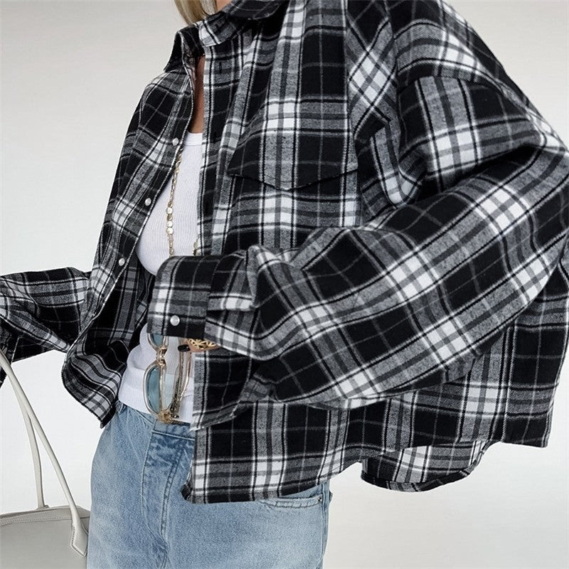 Material:Cotton-blendStyle:Intellectual,All-match,Look-youngerFeature:PlaidNeckline:LapelOccasion:Going out,Casual,Artistic Retro,Girlish Sweetness,Light Maturity,Leisure FashionSeasons:Spring,AutumnType:BlousesSleeve Length:Long SleeveSleeve Style:Raglan SleeveSize S (inch) : Bust= 44.46...