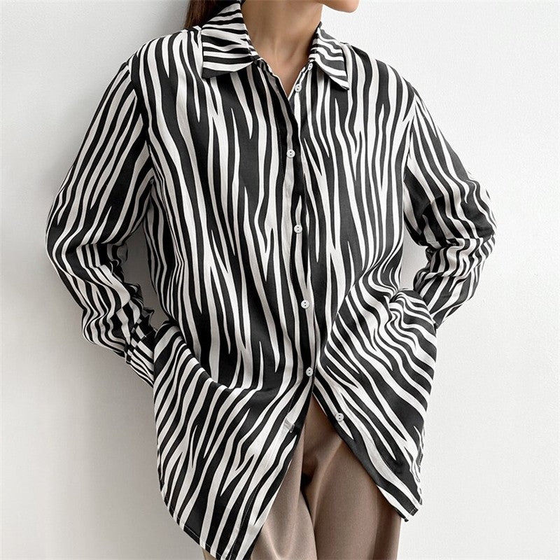 Material:DacronStyle:Loose,Intellectual,All-match,Look-youngerFeature:Zebra-StripeNeckline:LapelOccasion:Going out,Casual,Office,Artistic Retro,Girlish Sweetness,Light Maturity,Leisure FashionSeasons:Spring,AutumnType:BlousesSleeve Length:Long SleeveSleeve Style:Raglan SleeveSize S (inch) : Bust= 42.12...