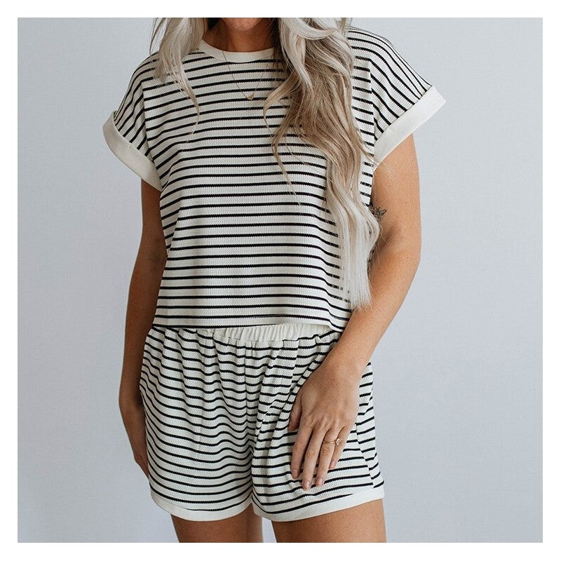 Striped Short Sleeve Shorts Set