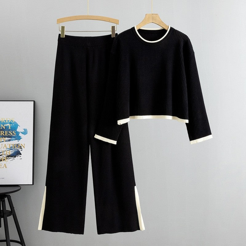 Fashion Knit Sweater Wide Leg Pants Set