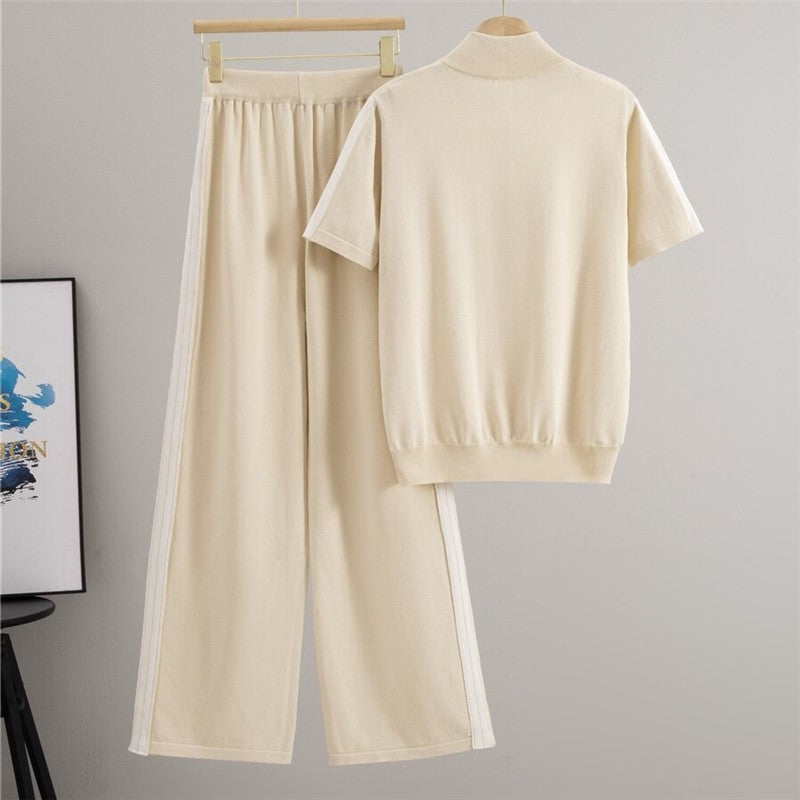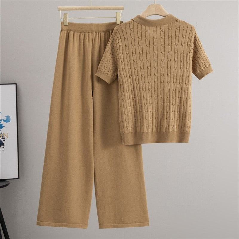 Loose Short Sleeve Knit Sweater Wide Leg Pants Set