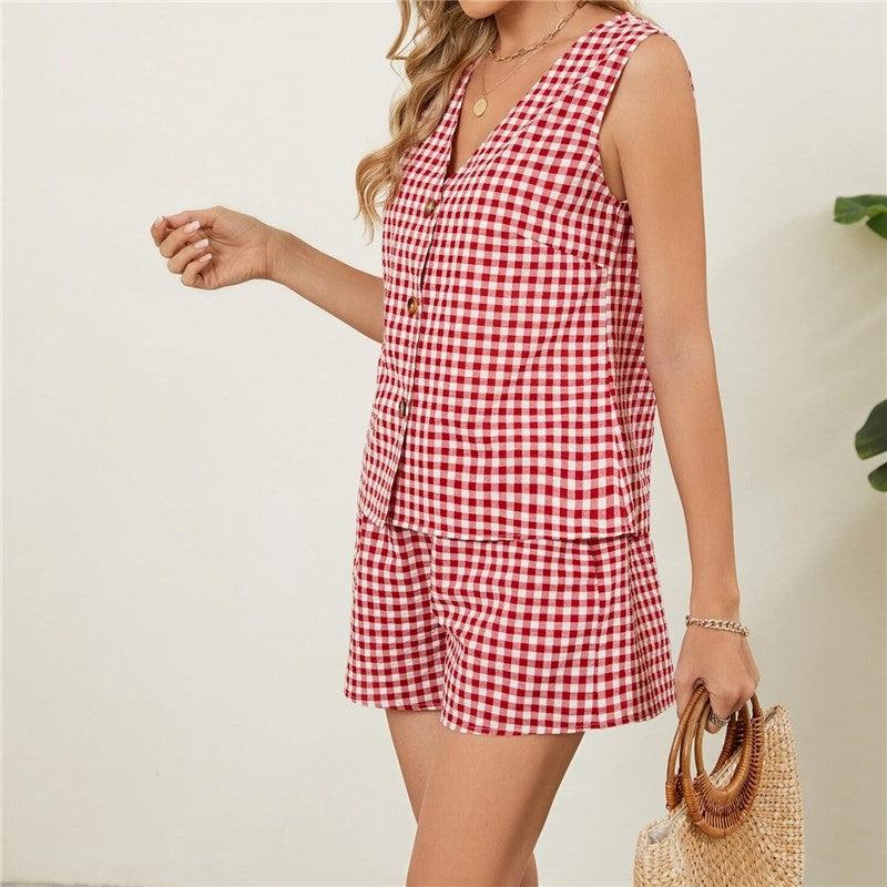 Loose Check Vest Shorts Set