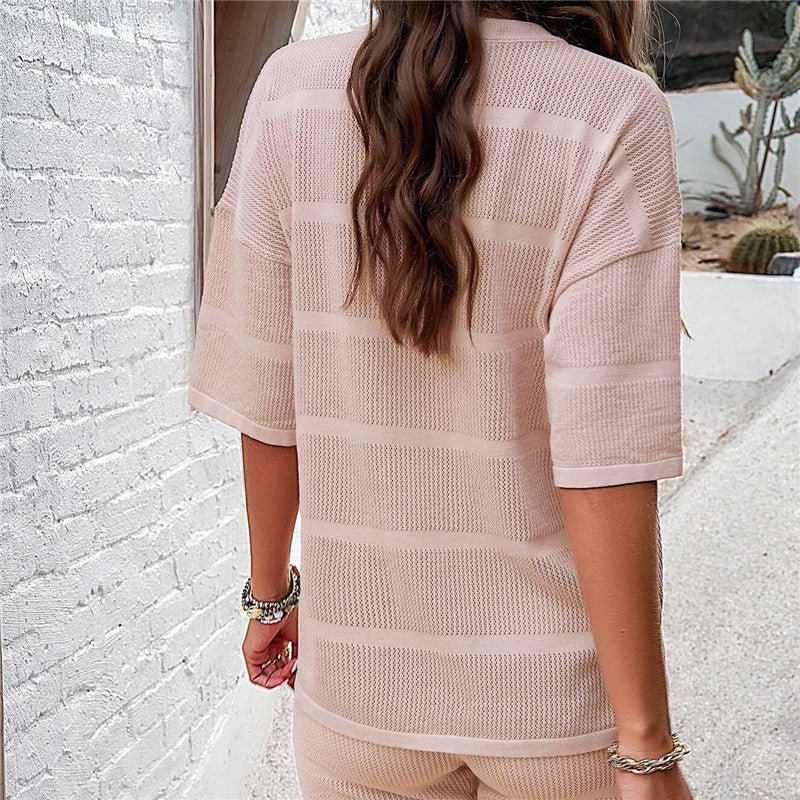 Relaxed Round Neck Knit Short Sleeve Shorts Set