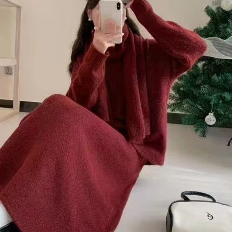 Knit Sweater Skirt Scarf Set