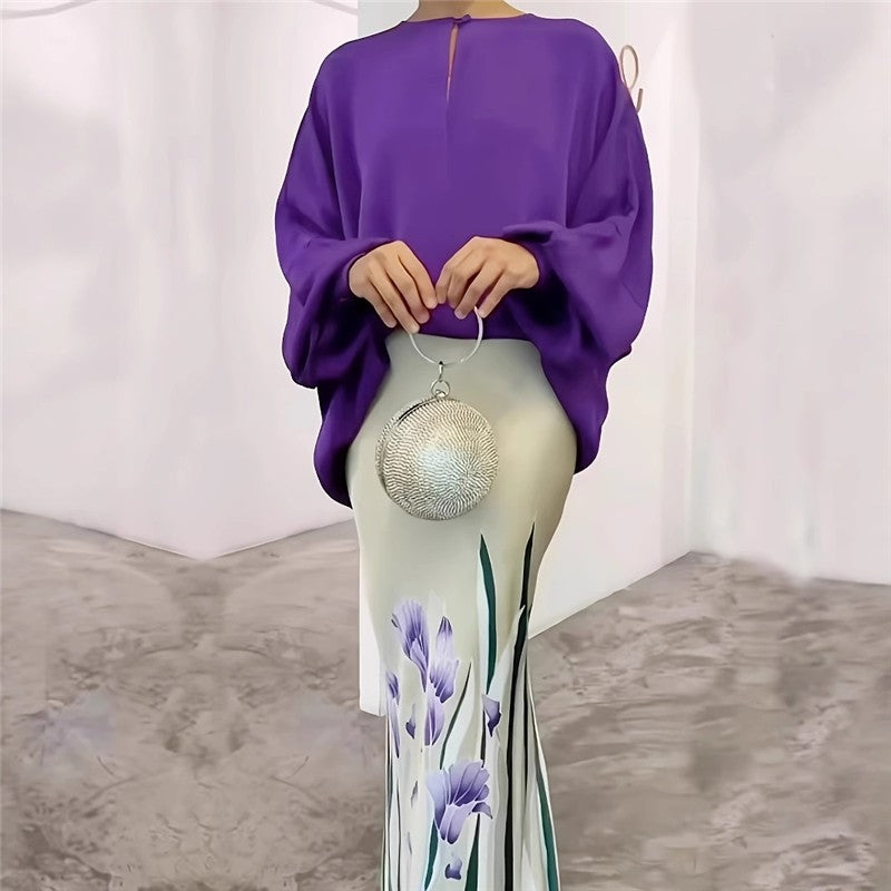 Loose Top Printed Pencil Skirt Set