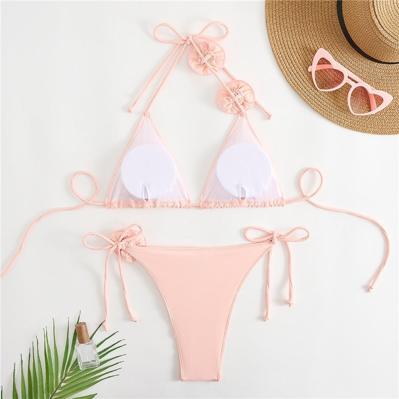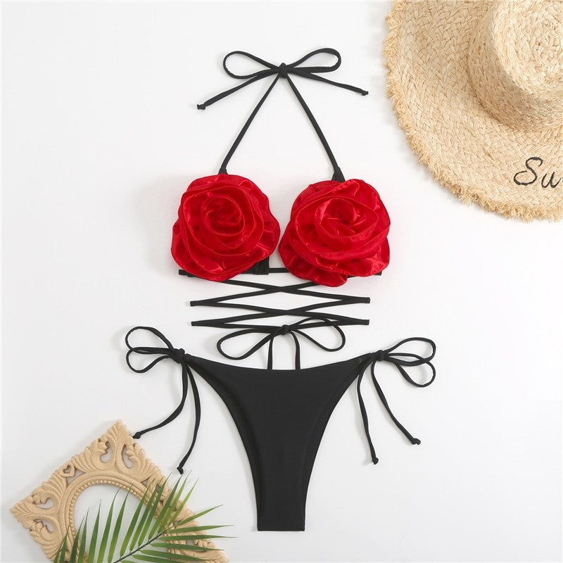 Floral Bikini Set With 3D Flower Detail