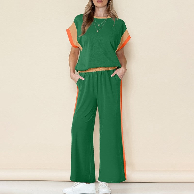 Material:Viscose FiberStyle:Loose,Intellectual,All-match,Look-youngerFeature:Contrast Color,ElasticityNeckline:Round-neckOccasion:Going out,Casual,Artistic Retro,Girlish Sweetness,Light Maturity,Leisure FashionSeasons:Spring,Summer,AutumnType:Two Pieces SetSleeve Length:Short SleeveSleeve Style:Batwing SleevesSize One_size...