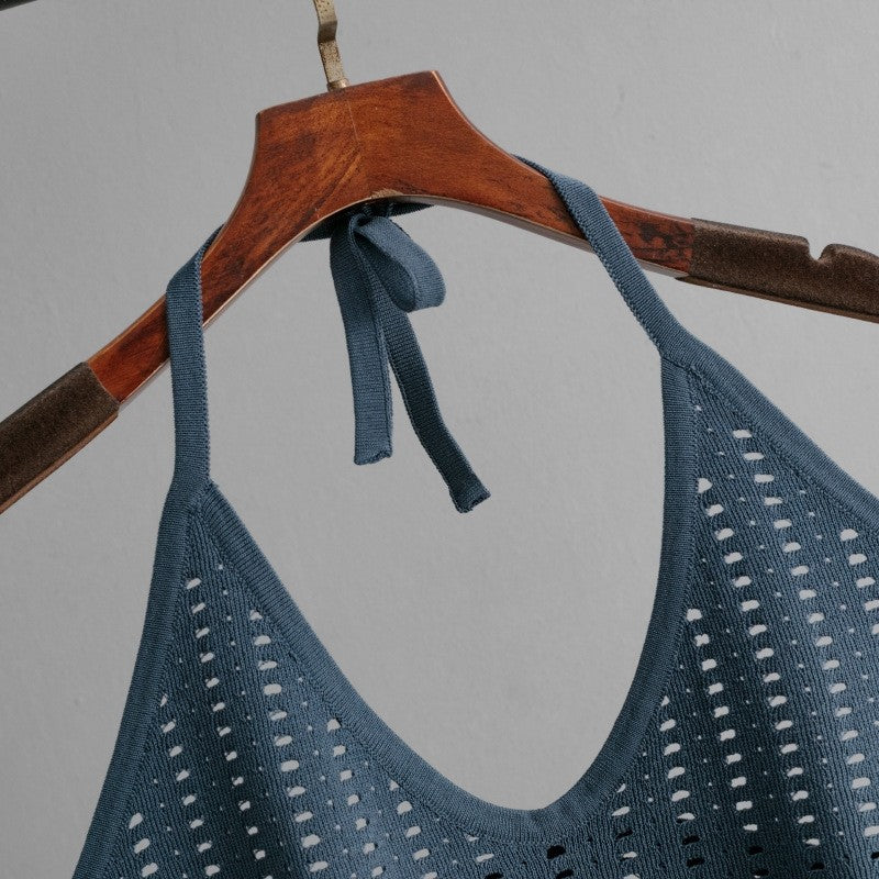 Material:Viscose FiberStyle:Loose,Cute,Intellectual,All-match,Look-youngerFeature:Tied,Hollow,Split-front,ElasticityNeckline:HalterneckOccasion:Going out,Casual,Artistic Retro,Girlish Sweetness,Light Maturity,Leisure FashionSeasons:SummerType:Two Pieces SetSleeve Length:SleevelessSize One_size (inch) : Bust= 35.10...