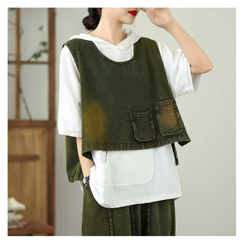 Material:Cotton-blendStyle:Cute,Intellectual,All-match,Look-youngerNeckline:Round-neckOccasion:Going out,Casual,Artistic Retro,Girlish Sweetness,Light Maturity,Leisure FashionSeasons:Spring,Summer,AutumnType:Two Pieces SetSleeve Length:SleevelessSize S (inch) : Pants length= 39.78...