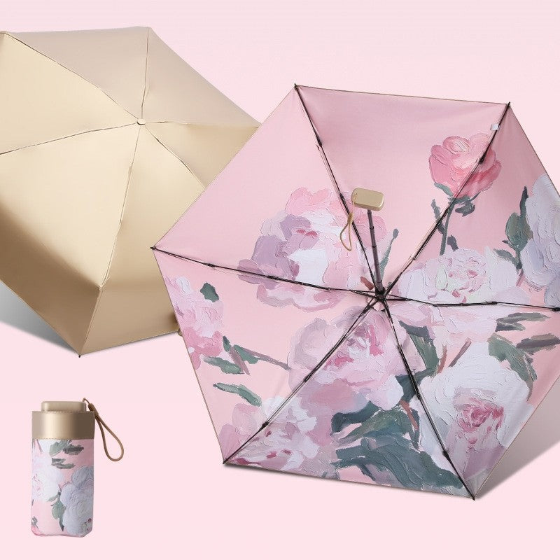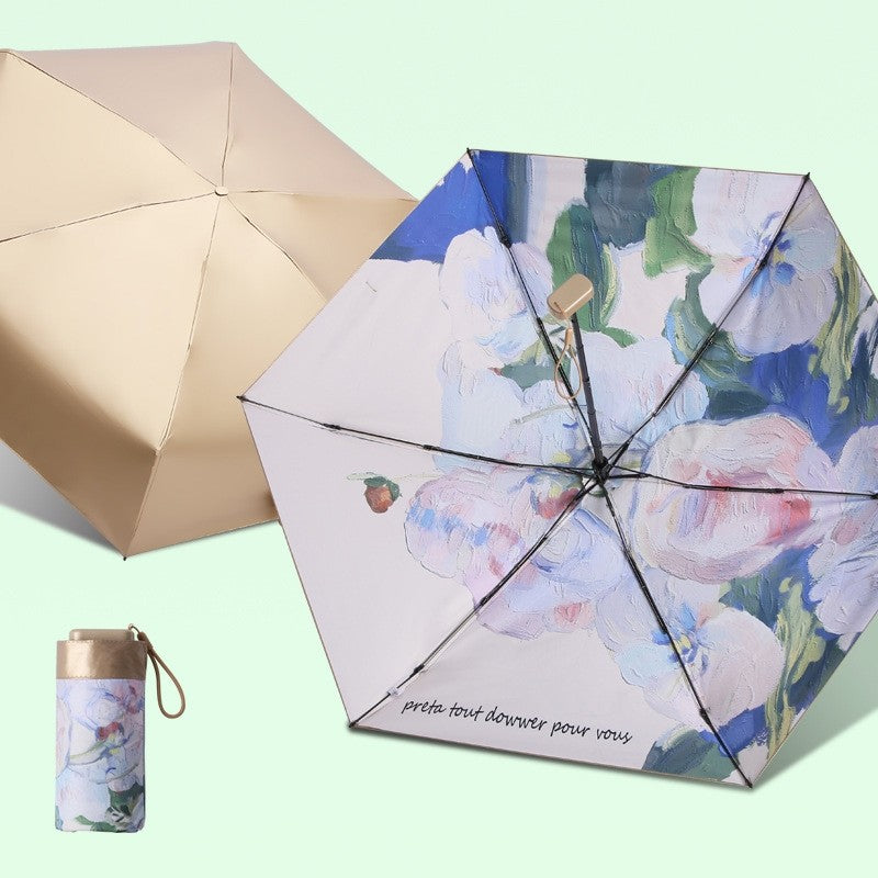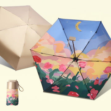 6 Ribs Sun Protective Inner Printed Portable Umbrella