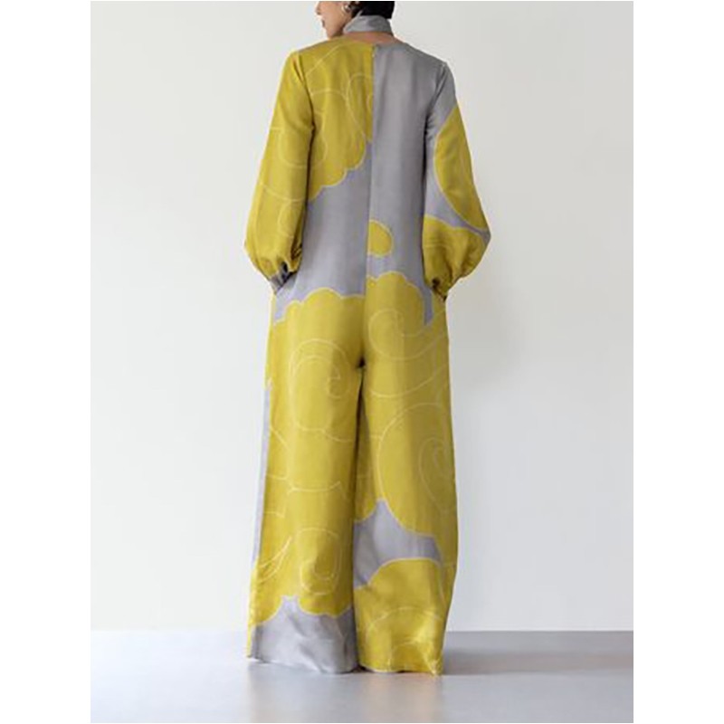 #Wide Leg Jumpsuits, #Printing Jumpsuits, #V-neck Jumpsuits, #Urban Fashion, #Stylish Jumpsuits, #Leisure Fashion, #Spring Jumpsuits, #Autumn Jumpsuits, #Long Sleeve Jumpsuits, #Balloon Sleeves Jumpsuits,