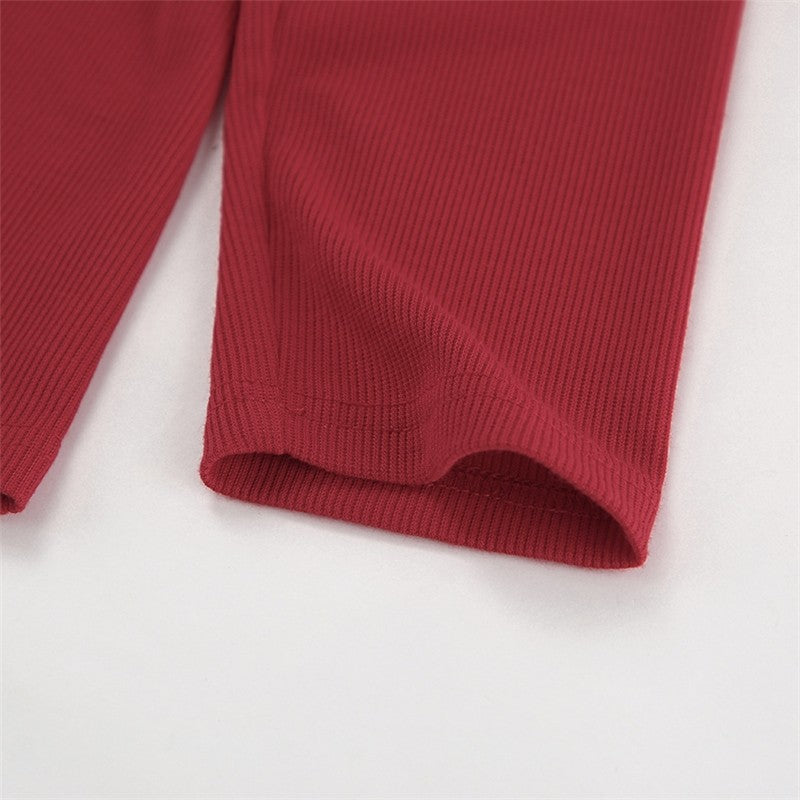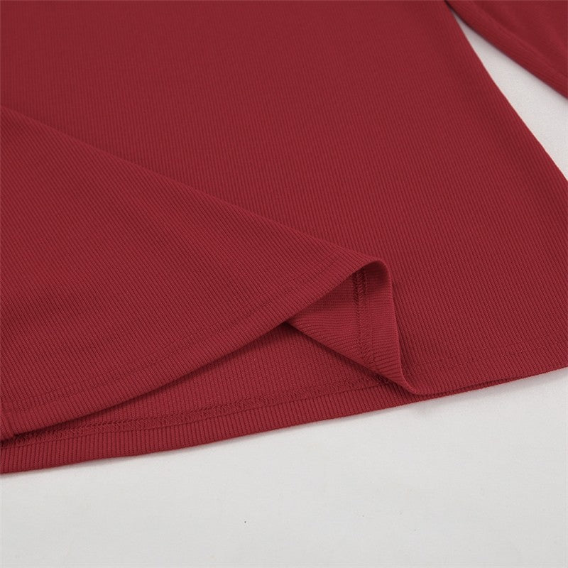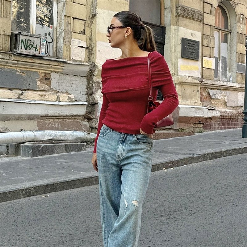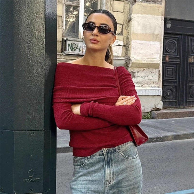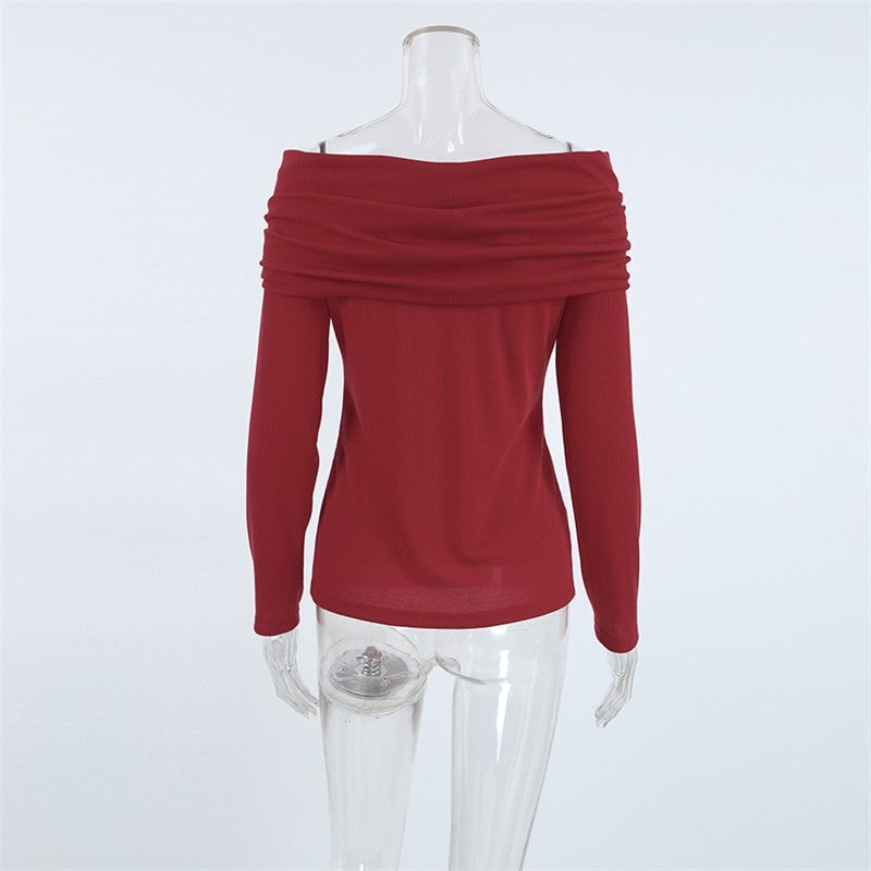 Angola Red Off Shoulder Knit Long Sleeve Tshirt