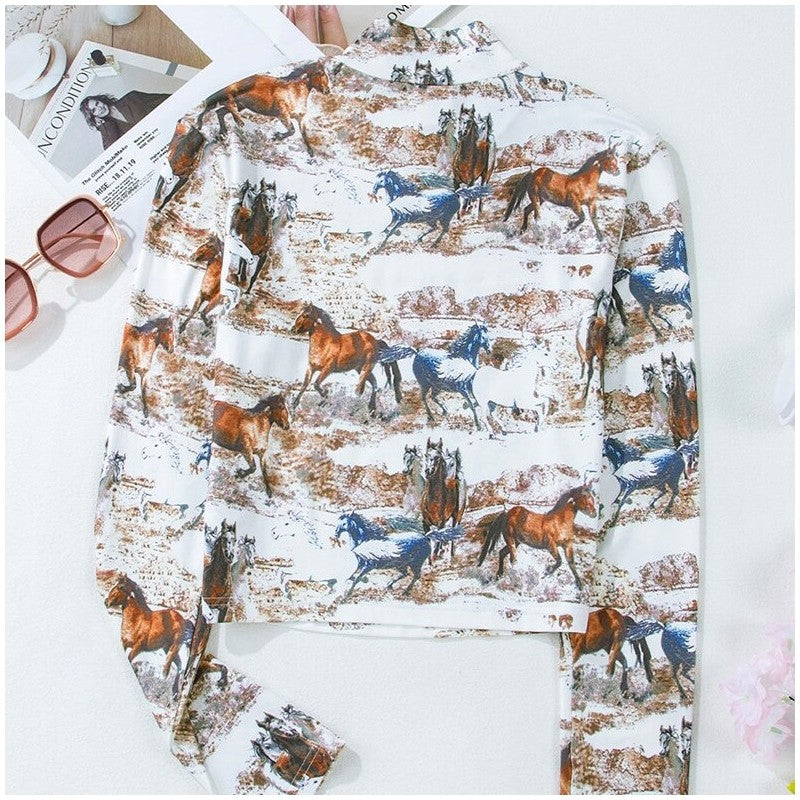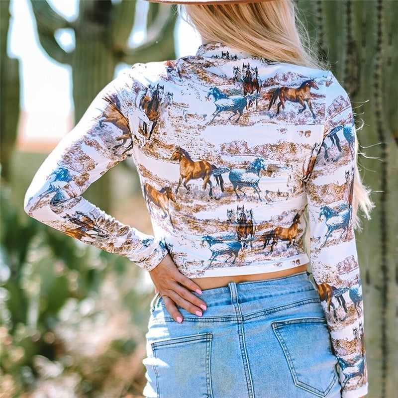 Animal Print Hollow Out Long Sleeve Tee