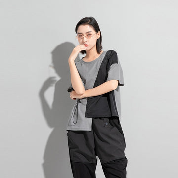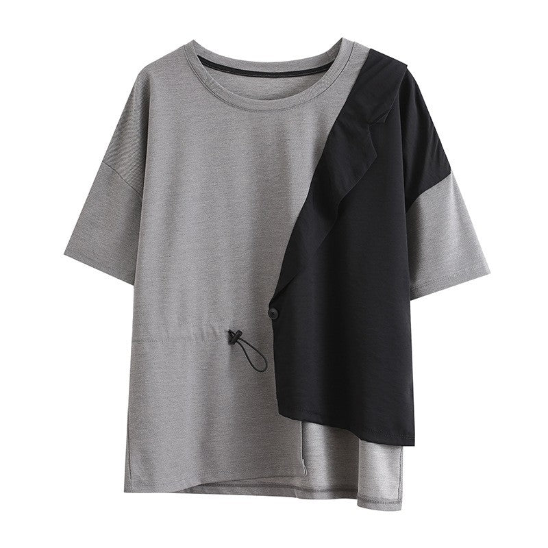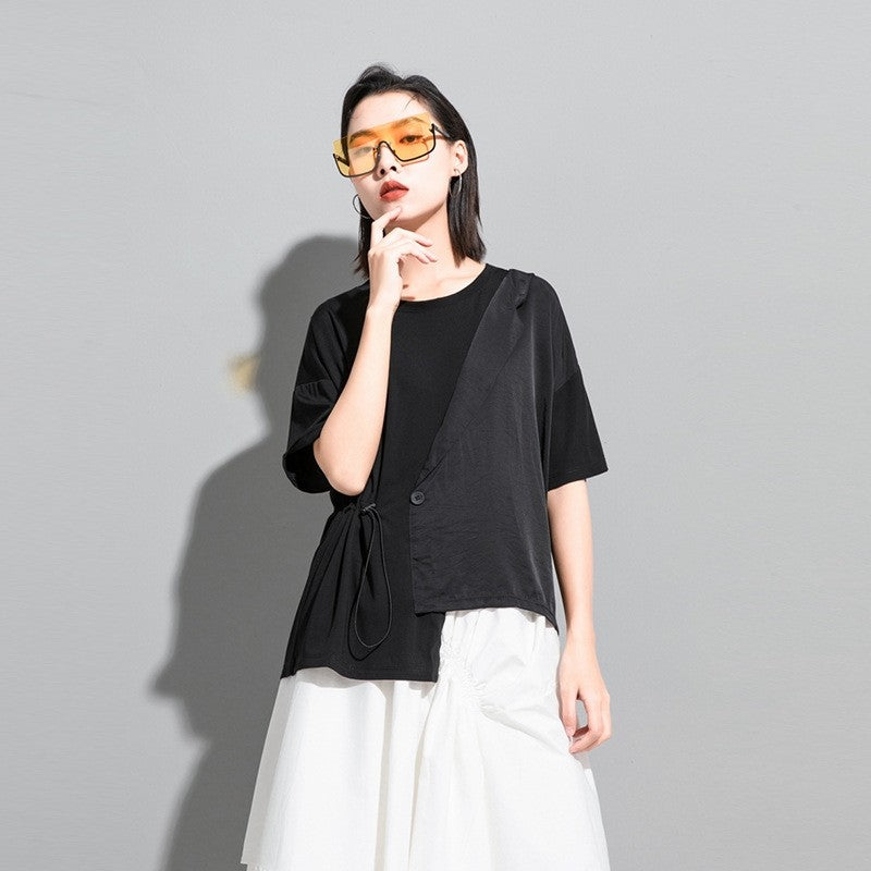 Asymmetric Suit Collar Faux Two-Piece Short Sleeve T-Shirt