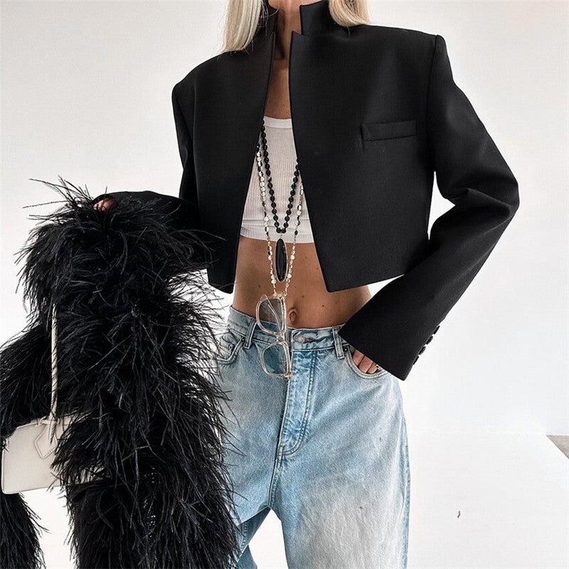 Black Long Sleeve Stand Collar Short Blazer